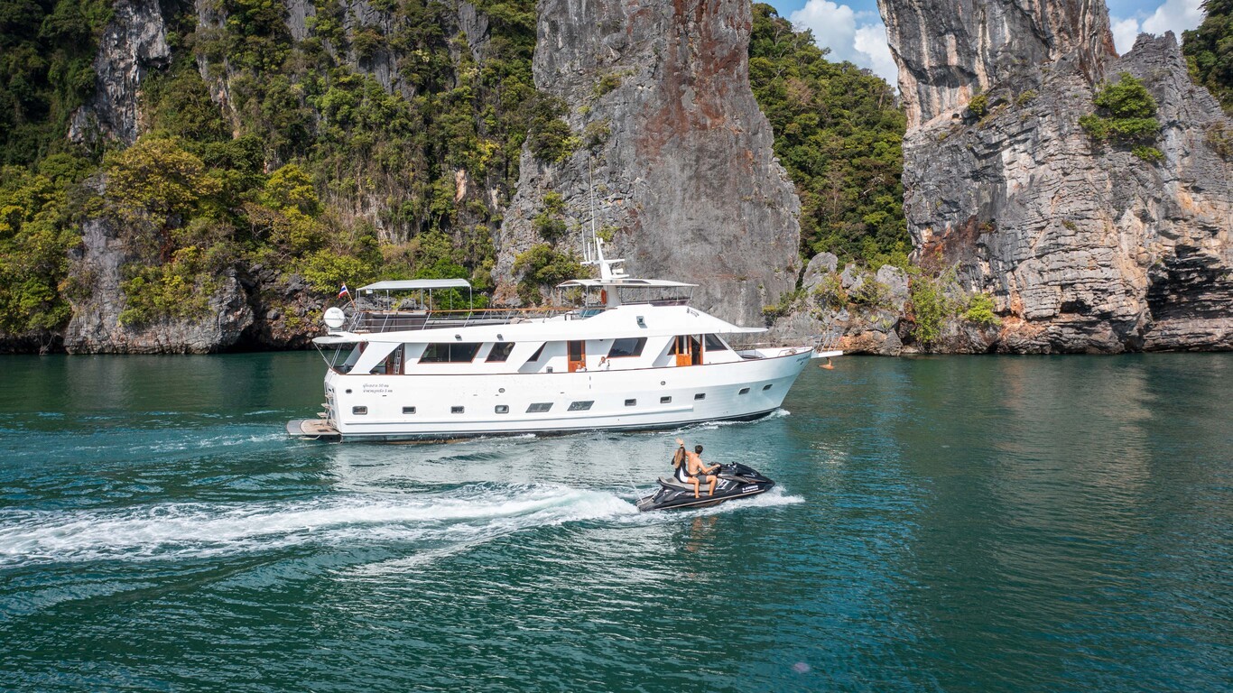 Siam Princess is a classic 70ft motor yacht designed for sea lovers. She is the perfect vessel for your multiple day cruise in the Andaman sea. The yacht was fully refurbished in december 2020 to combine modern convenience with the charm and elegance of a classic yacht. Take the journey you have always dreamed of and discover the flawless elegance of Siam Princess Yacht.